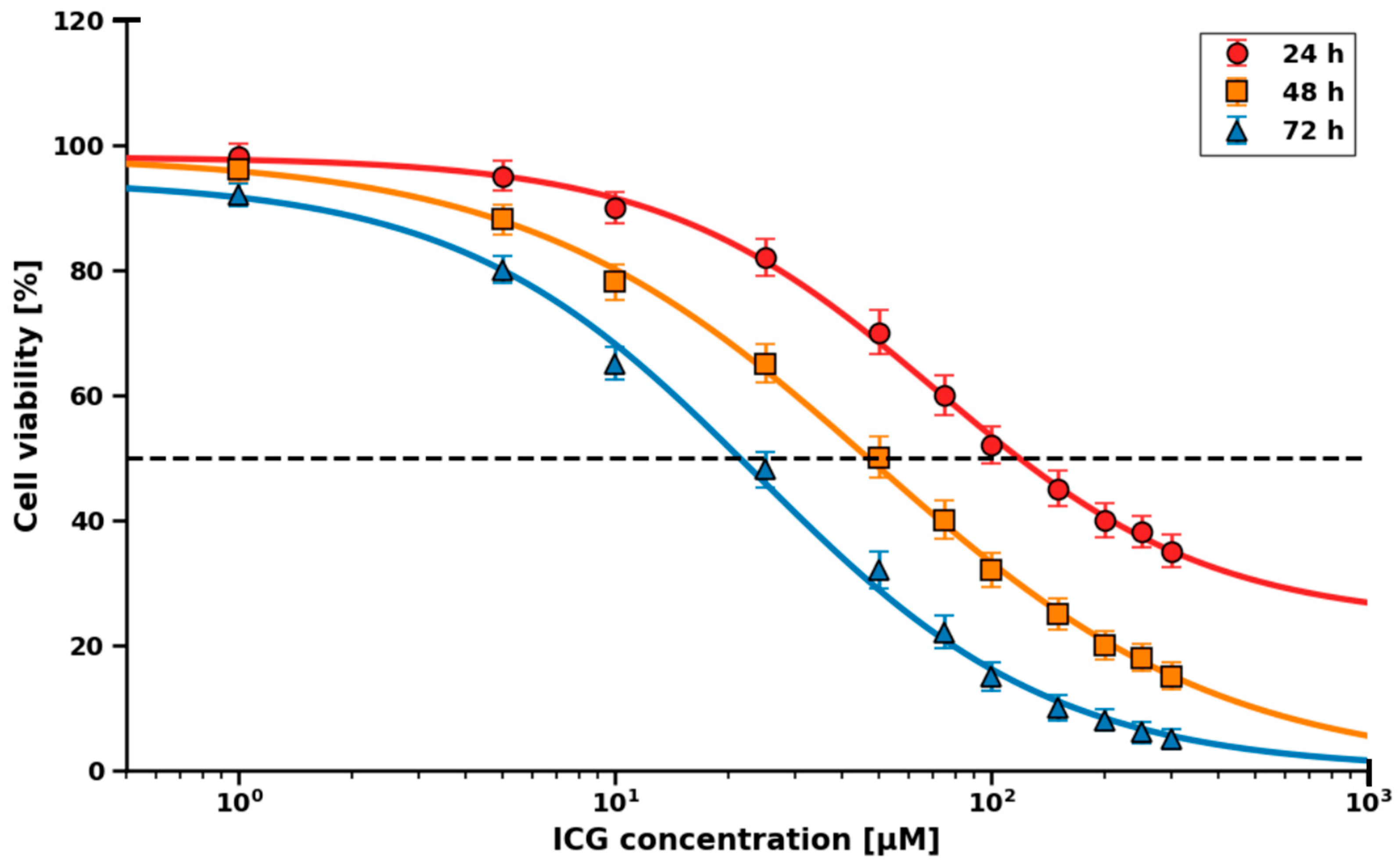 2.2. Half Maximal Inhibitory Concentration (IC50) of Indocyanine Green Compound
