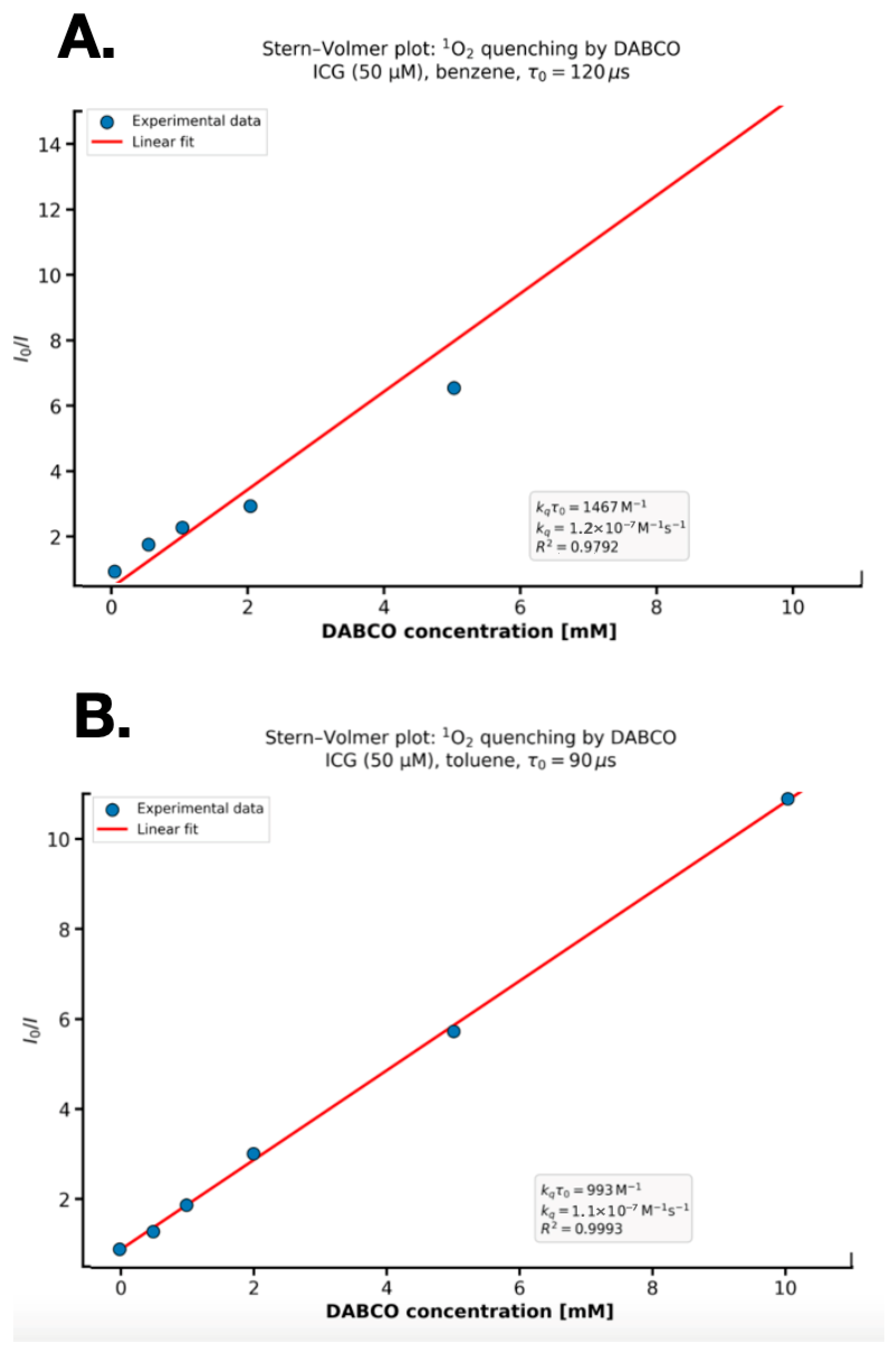 4.7. Stern–Volmer Quenching of Singlet Oxygen by DABCO