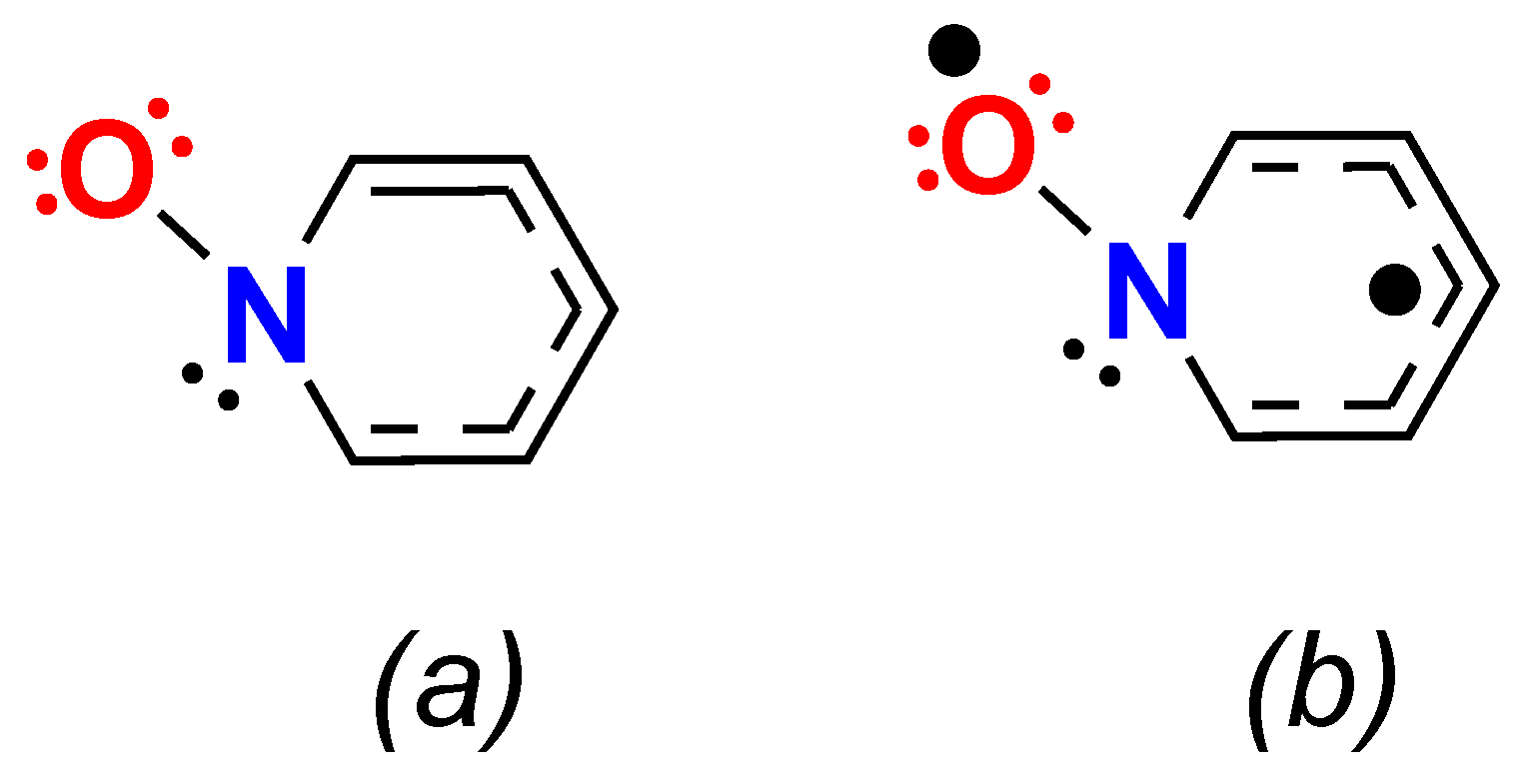 - Quagliano, J.; Fujita, J.; Franz, G.; Phillips, D.; Walmsley, J.; Tyree, S. The donor properties of pyridine N-oxide. J. Am. Chem. Soc. 1961, 83, 3770–3773. [Google Scholar] [CrossRef]