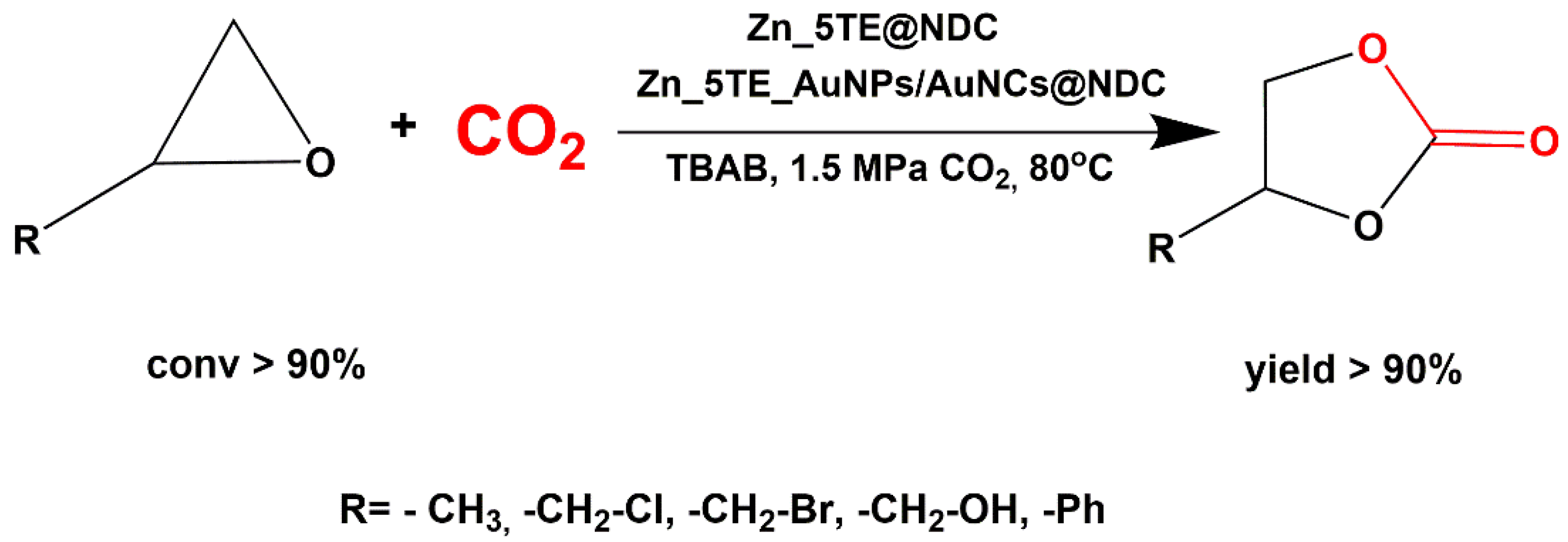 - Eskemech, A.; Chand, H.; Karmakar, A.; Krishnan, V.; Koner, R.R. Zn-MOF as a Single Catalyst with Dual Lewis Acidic and Basic Reaction Sites for CO2 Fixation. Inorg. Chem. 2024, 63, 3757–3768. [Google Scholar] [CrossRef]