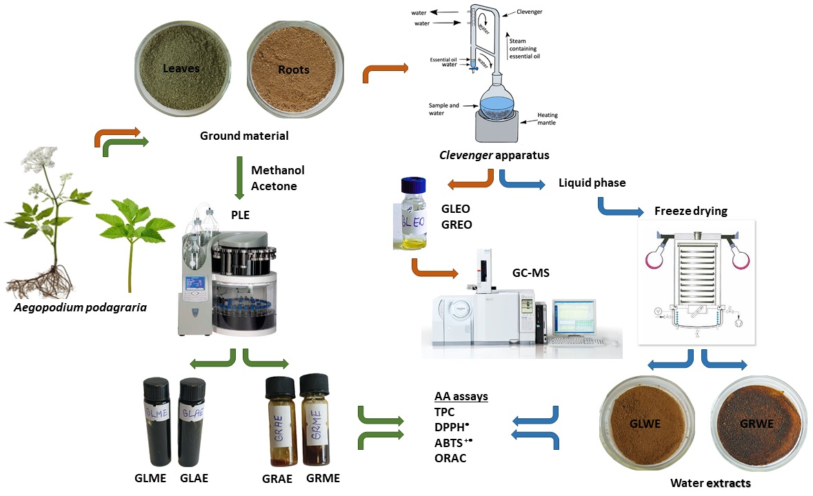Baranauskienė, R.; Račkauskienė, I.; Venskutonis, P.R. Characterization of Steam Volatiles and Evaluation of the Antioxidant Properties of Different Extracts from Leaves and Roots of Aegopodium podagraria L. Molecules 2025, 30, 4786. https://doi.org/10.3390/molecules30244786