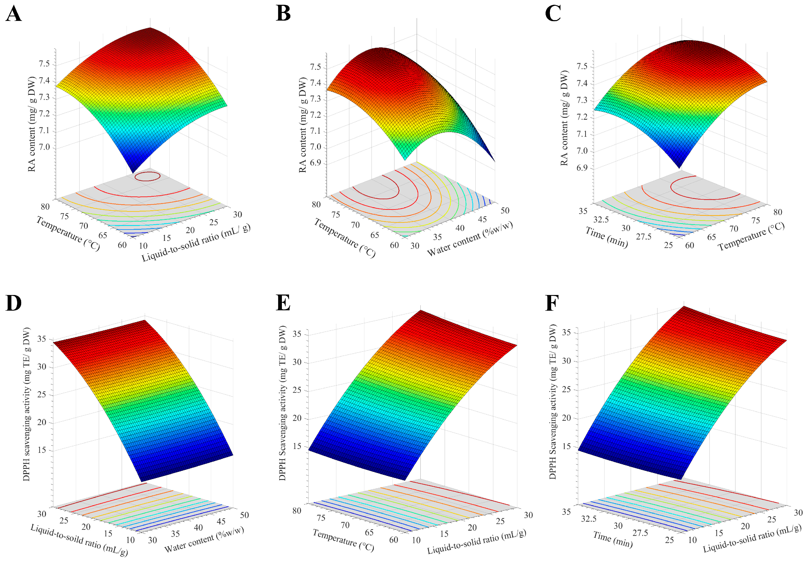 2.3. The Optimized Extraction Conditions Were Achieved by Response Surface Methodology with Box–Behnken Design