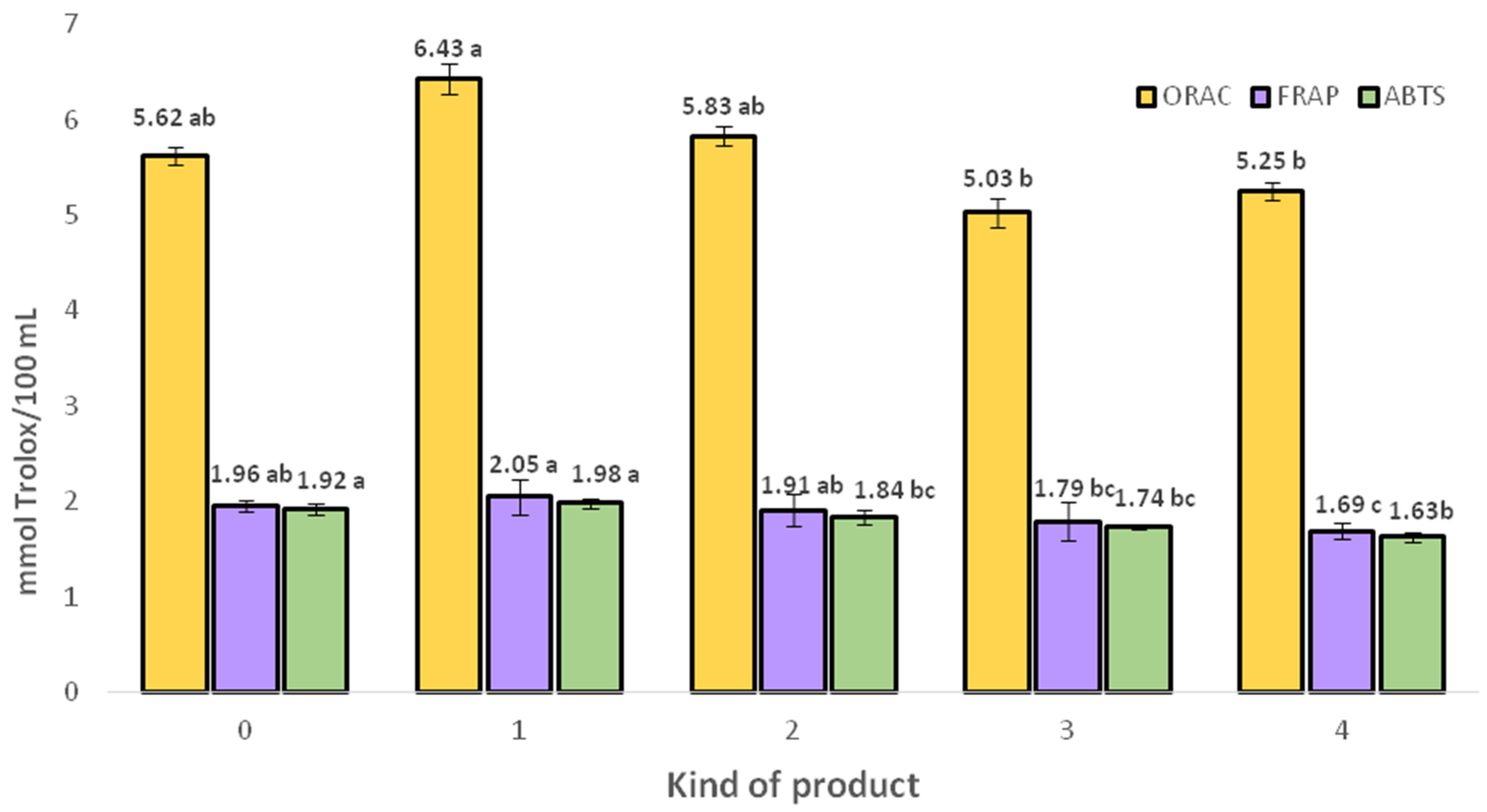 2.4. Analysis of Health-Promoting Potential of the Obtained Products Using In Vitro Methods