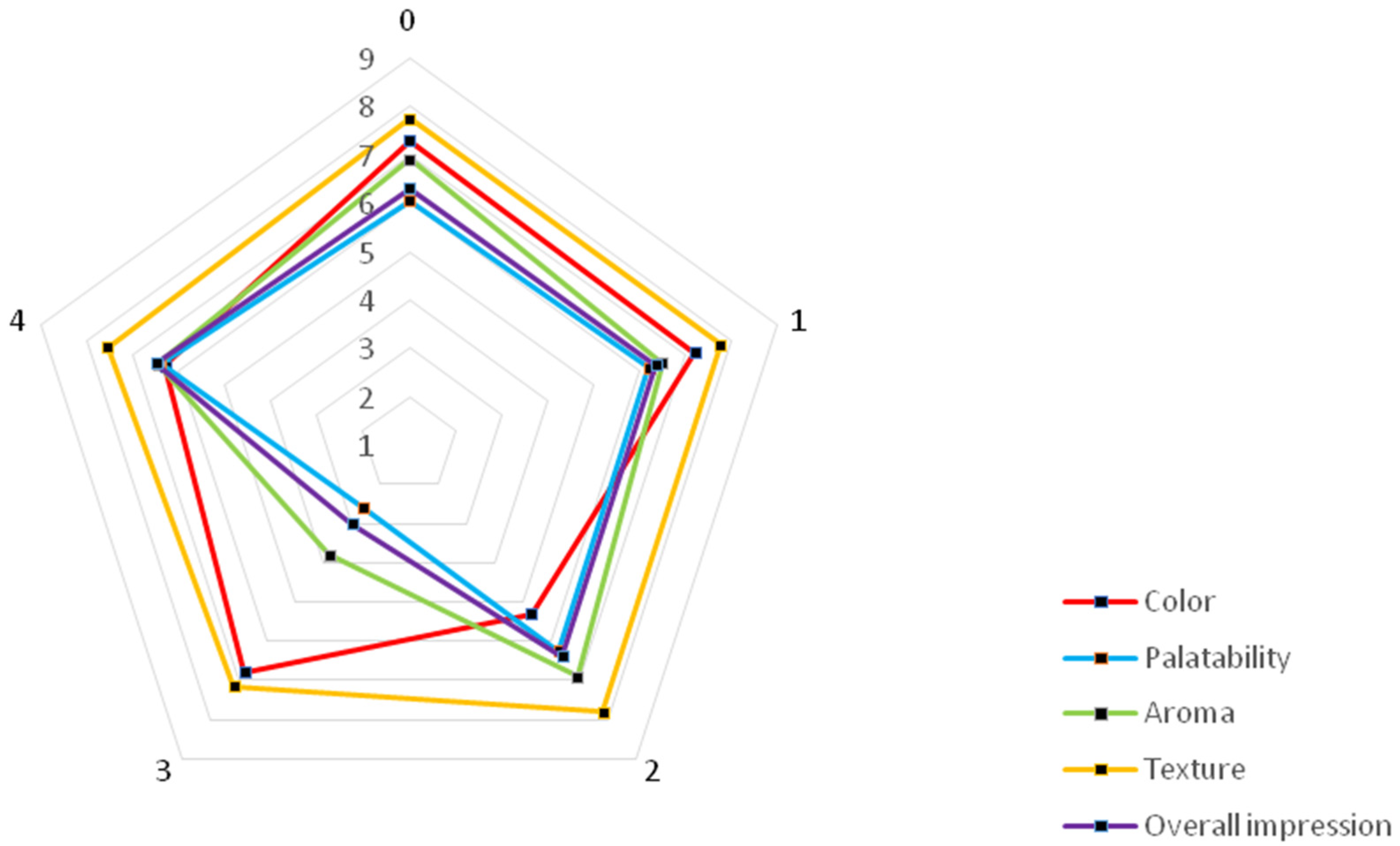 2.5. Sensory Evaluation of the Obtained Functional Beverages