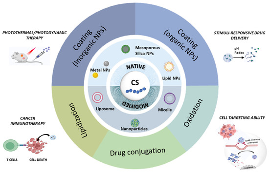 Schematic representation of CS-based nanoplatform for cancer therapy discussed in this review.