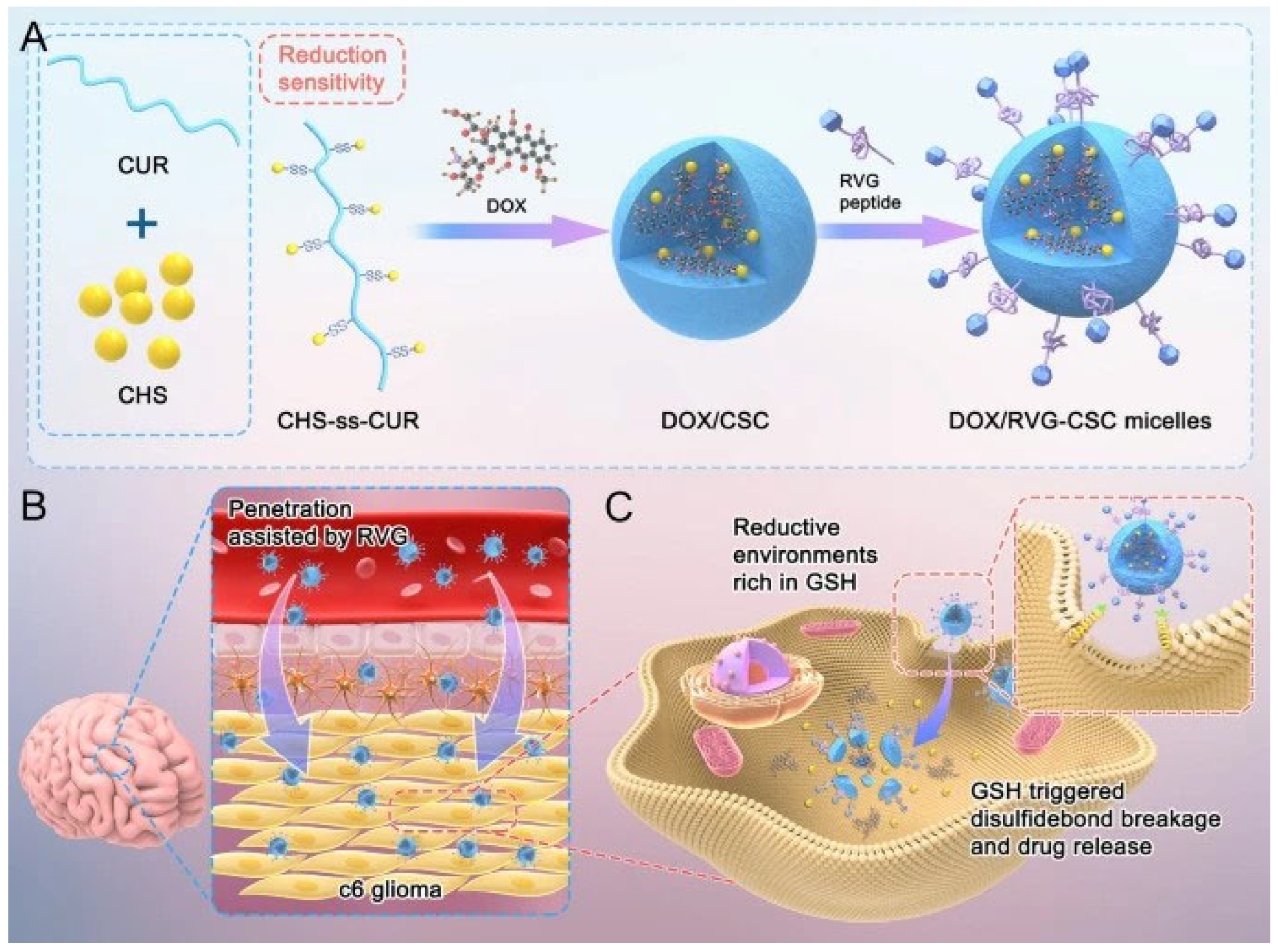 | CS-ss-CUR | RVG | Sonication | CUR DOX | Brain | C6 C6/ADR | C6/ADR Xenograft | Enhanced BBB permeability CD44 targeting Redox-responsive release MDR reversal Antimetastatic | [114] |