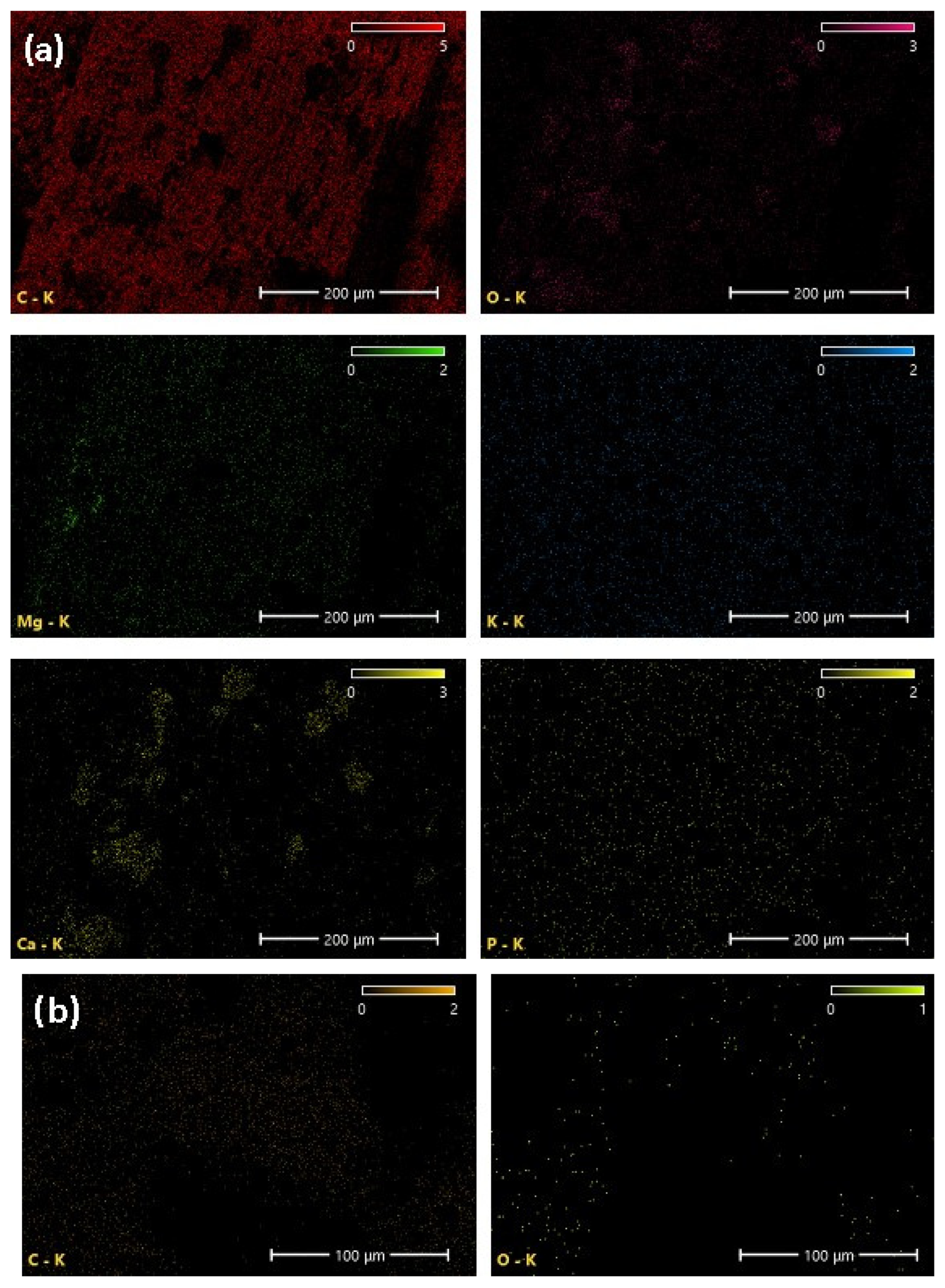 | C (wt%) | O (wt%) | Mg (wt%) | P (wt%) | K (wt%) | Ca (wt%) | Total | |