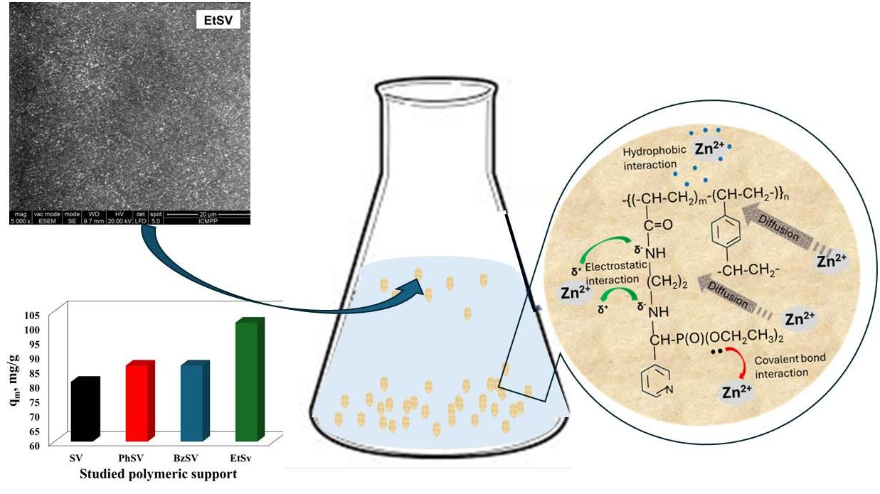 Lupa, L.; Visa, A.; Popa, A.; Dinu, M.V.; Fringu, I.; Dragan, E.S. Adsorption of Zinc Ions from Aqueous Solutions on Polymeric Sorbents Based on Acrylonitrile-Divinylbenzene Networks Bearing Aminophosphonate Groups. Molecules 2025, 30, 4805. https://doi.org/10.3390/molecules30244805