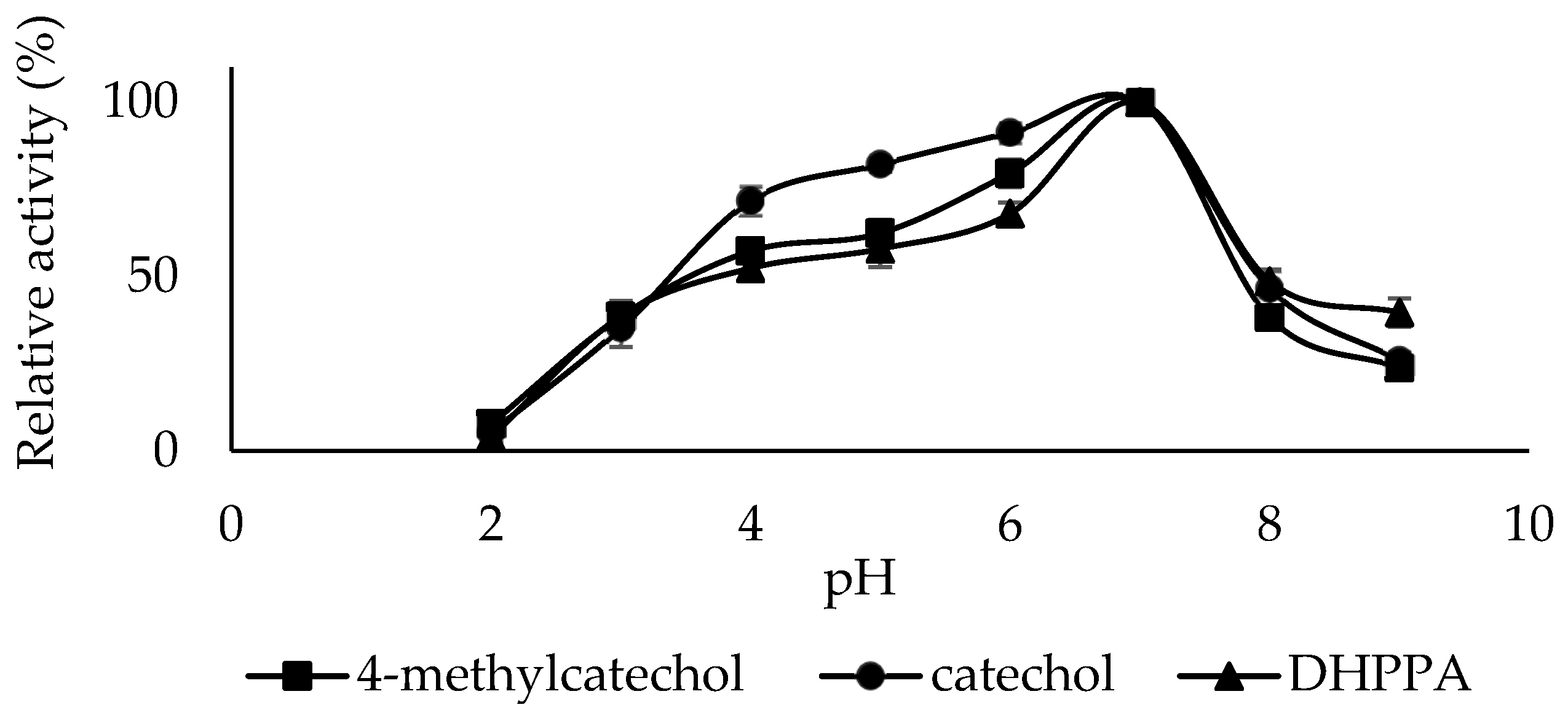 - Özel, A.; Colak, A.; Arslan, O.; Yildirim, M. Purification and characterisation of a polyphenol oxidase from Boletus erythropus and investigation of its catalytic efficiency in selected organic solvents. Food Chem. 2010, 119, 1044–1049. [Google Scholar] [CrossRef]