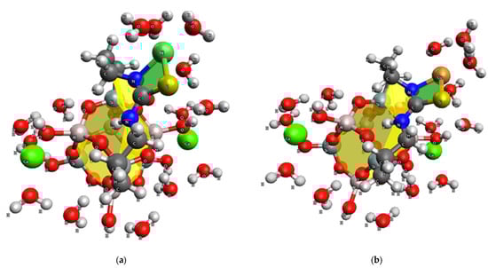 To evaluate the types of interactions that are present in the aluminosilicate cluster-modifying molecule–adsorbate system, Beider’s Quantum Theory of Atoms in Molecules was applied [72]. The corresponding topological analysis of electron density was performed using the version of 3.8 Multiwfn software package [73].