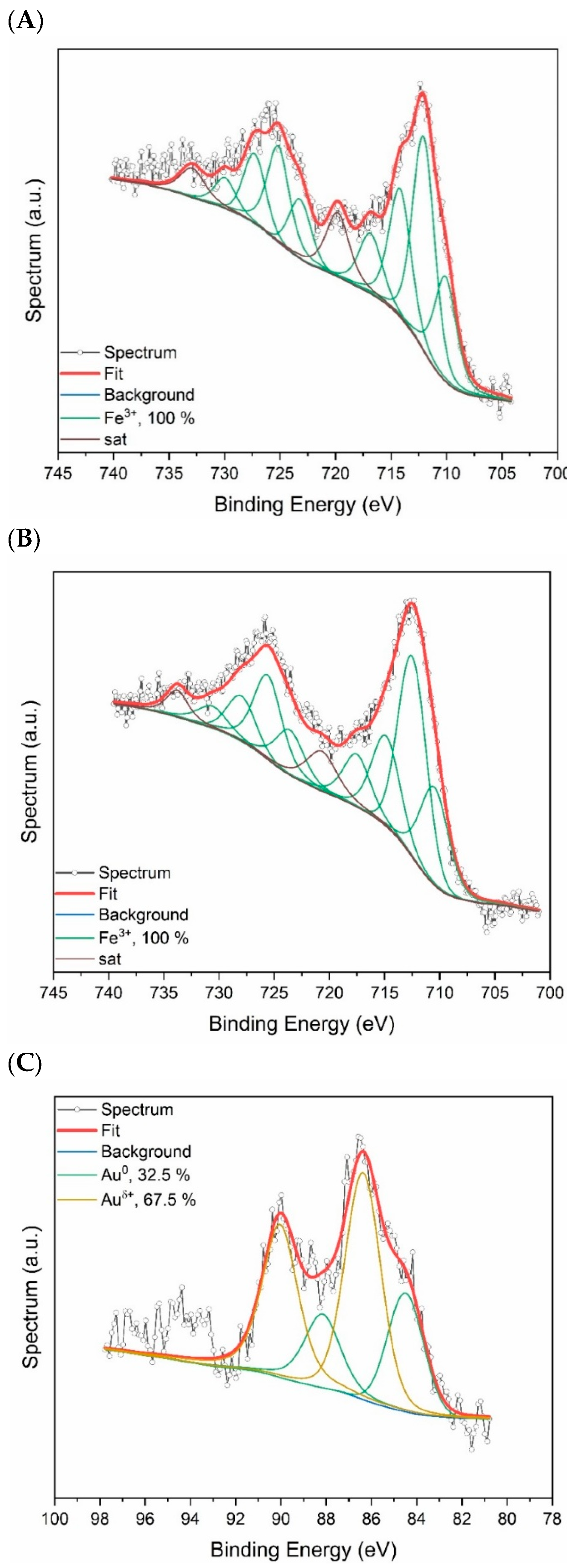 2.1. Spectroscopic Characterization of AuAg-BSA-SPION@pl-BPD-PET