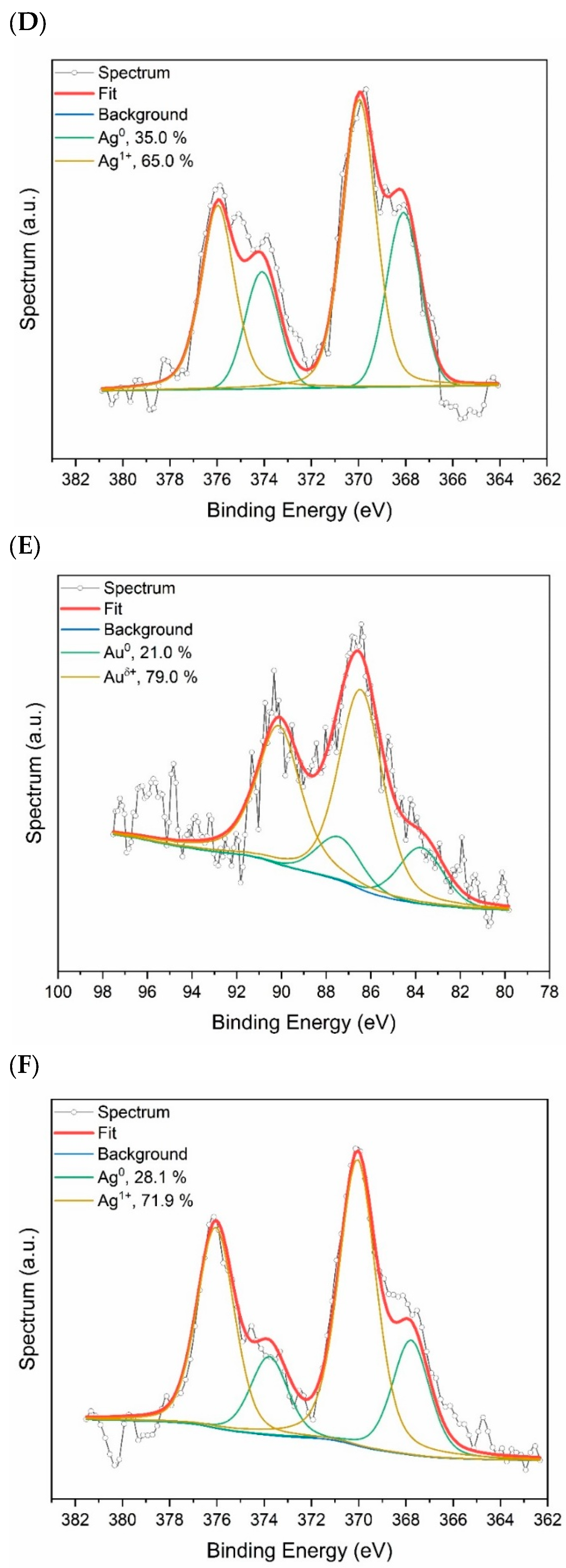 | Element, Selected Orbital | AuAg-BSA-SPION | AuAg-BSA-SPION@pl-BPD-PET | |