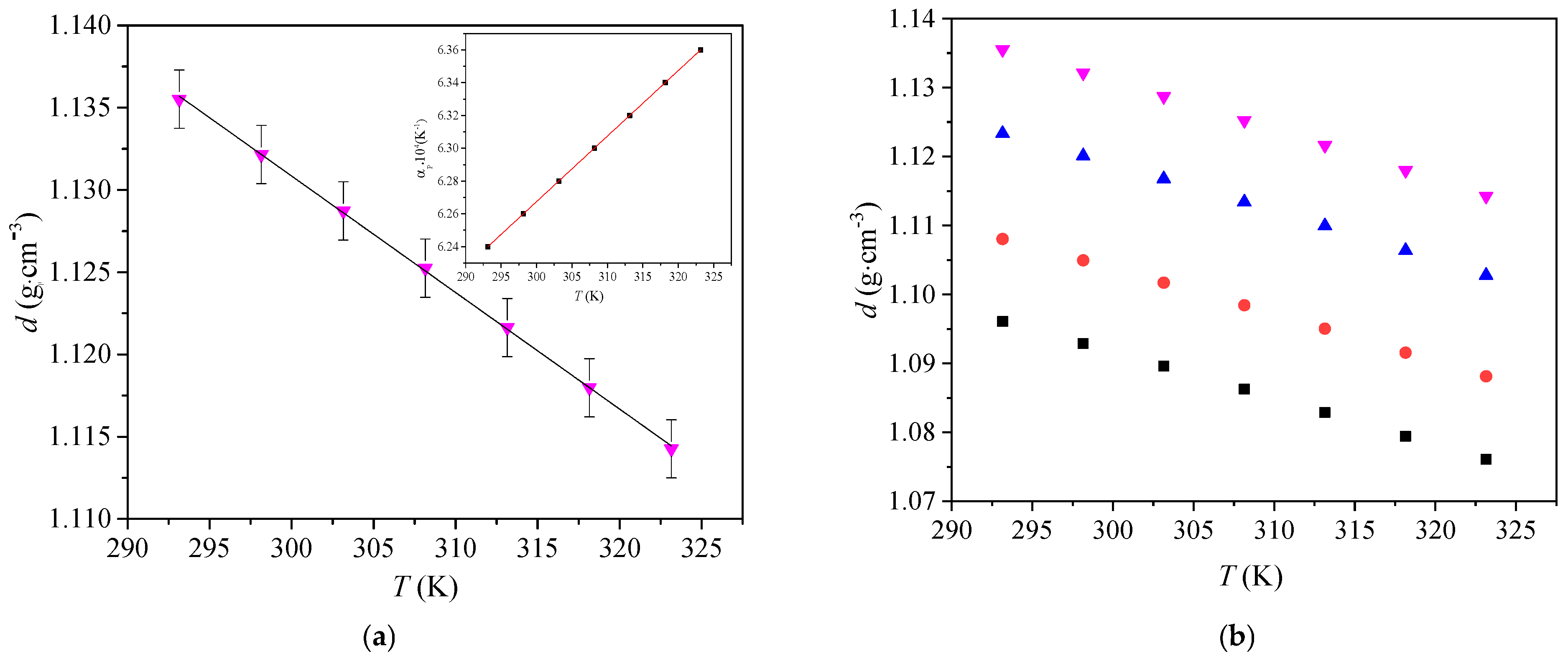 2.1. Experimental Density, Viscosity, and Conductivity of Pure Ionic Liquid