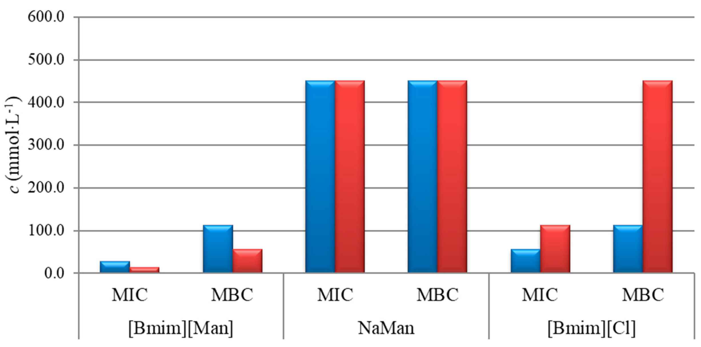 2.2. Antimicrobial Activity of [Bmim][Man]