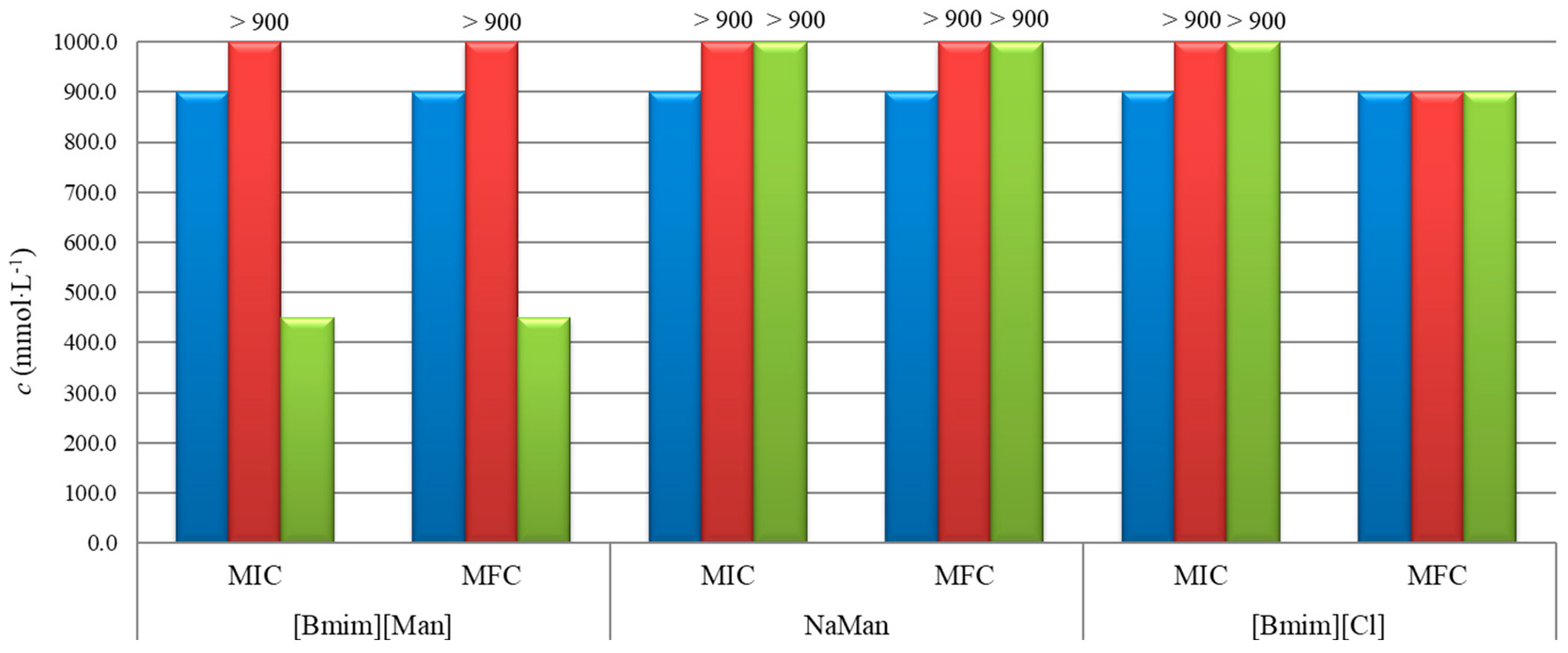 | [Bmim][Man] | 28.1 | 112.6 | 14.1 | 56.3 | 900 | hell900 | >900 | >900 | 450.4 | 450.4 |