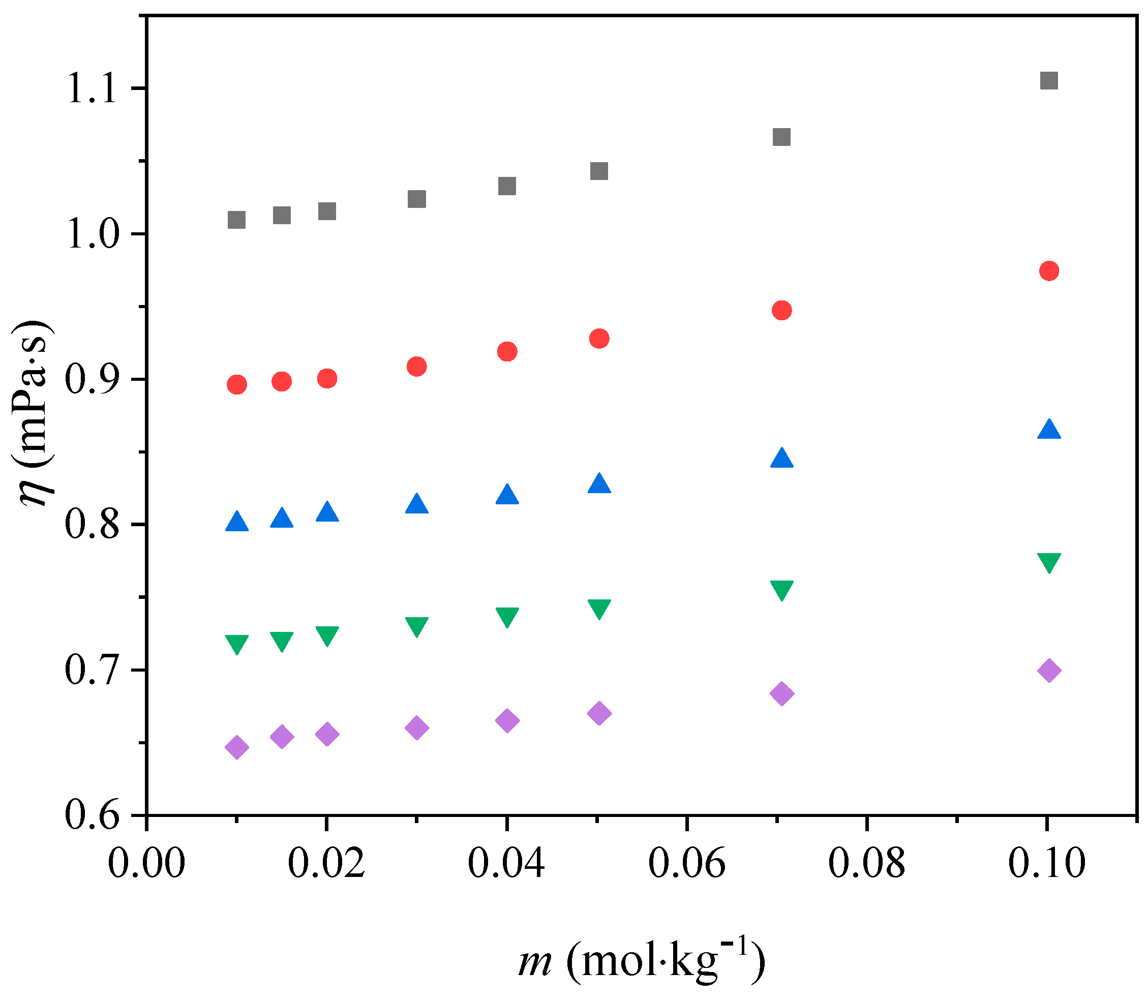 3.3. Viscosity Measurements of [Bmim][Man] Aqueous Solutions