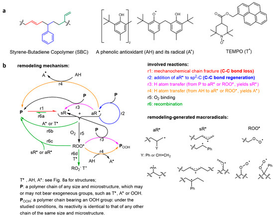 Figure 7b) initiated the bond-forming reaction cascades. Mechanochemical fracture of an SBC chain yields a mixture of alkyl and stabilized (allylic and benzylic, sR