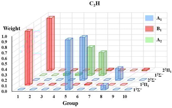 The weights of grouped VB structures for each state of C2H.