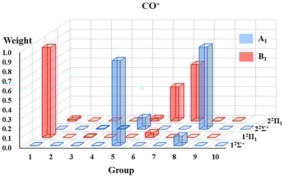 The weights of grouped VB structures for each state of CO+.