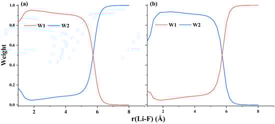 The weights of the two dominant VB structures of (a) the ground state and (b) the first excited state of LiF calculated by hc-DFVB with HAOs and B3LYP functional.