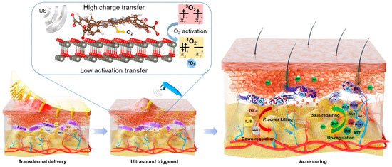 - Xiang, Y.; Lu, J.; Mao, C.; Zhu, Y.; Wang, C.; Wu, J.; Liu, X.; Wu, S.; Kwan, K.Y.H.; Cheung, K.M.C.; et al. Ultrasound-Triggered Interfacial Engineering-Based Microneedle for Bacterial Infection Acne Treatment. Sci. Adv. 2023, 9, eadf0854. [Google Scholar] [CrossRef] [PubMed]