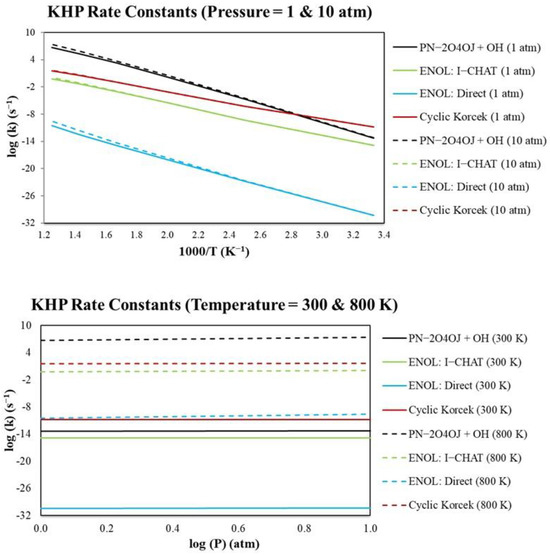 Apparently, the multistep processes can effectively occur when sufficient internal energy is available to overcome the barriers, typically when the molecule is activated chemically or photochemically, as in the case of energized KHP intermediates produced during the combustion of conventional fuels via the dual oxygenation of fuel radicals [3,10,11].