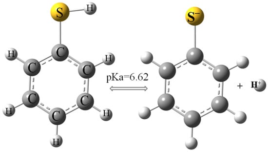 Protonated and deprotonated structure of thiophenol [4].