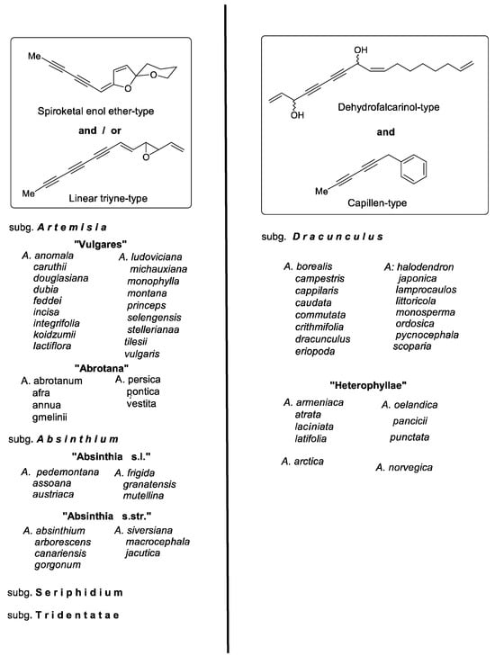 Figure 9. Infrageneric grouping of Artemisia based on the formation of characteristic structural types of polyacetylenes.