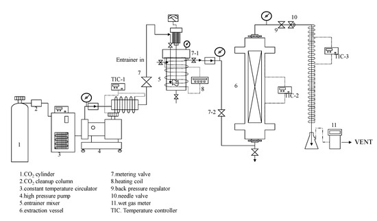 Schematic flow diagram of supercritical CO2 extraction for sesame meal.