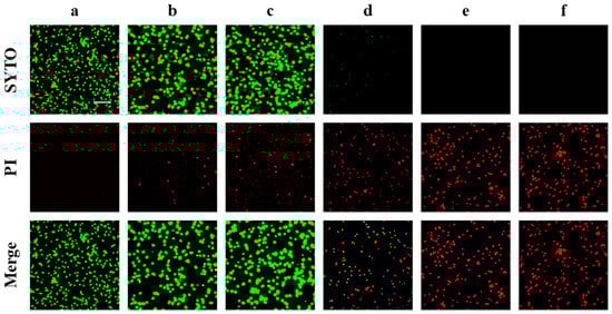 - Stiefel, P.; Schmidt-Emrich, S.; Maniura-Weber, K.; Ren, Q. Critical aspects of using bacterial cell viability assays with the fluorophores SYTO9 and propidium iodide. BMC Microbiol. 2015, 15, 36. [Google Scholar] [CrossRef] [PubMed]