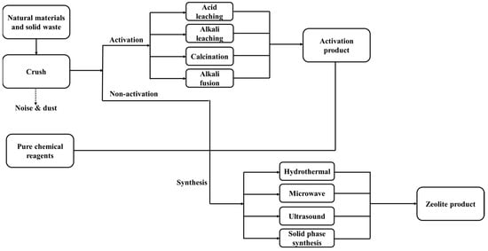 Flow chart of zeolite synthesis from natural materials and solid waste.