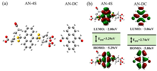 (a) Optimized molecular configurations for AN-4S and AN-DC probes; (b) HOMO–LUMO energy gap between AN-4S and AN-DC probes.