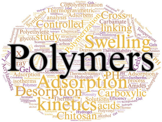 Figure 4 shows the most relevant keywords in this literature review, which has identified key terms in this field, such as “Adsorption”, “Desorption”, “Swelling”, “Kinetics”, “Amines”, “Polymers”, and “Chitosan”, among others. The significance of these terms is closely related to CO2 capture and conversion processes, where amines play a crucial role. These chemicals are recognized for their ability to absorb CO2, making them key components in climate change mitigation technologies.