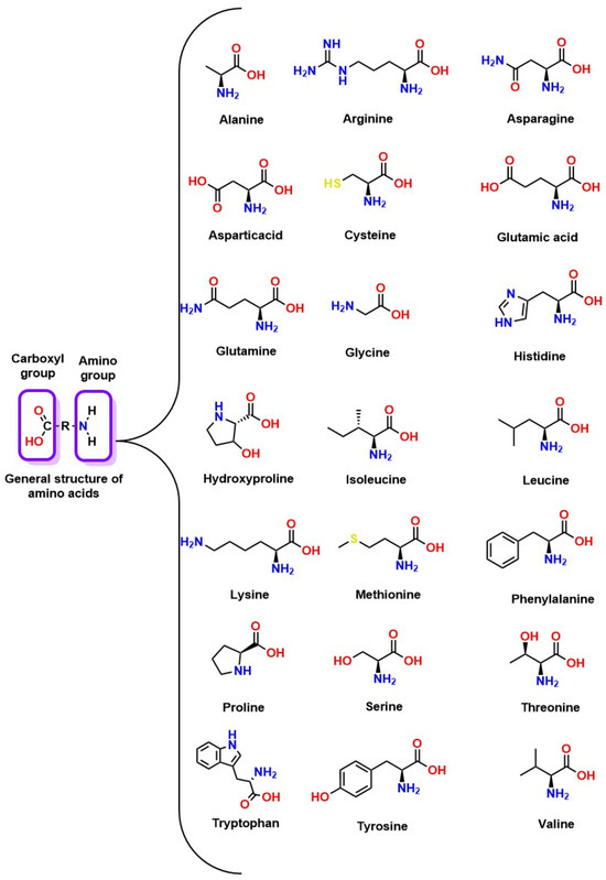 Types of amino acids: their chemical structure contains groups, such as NH2, that are reactive with CO2, which has attracted attention as potential agents for CO2 absorption [91].