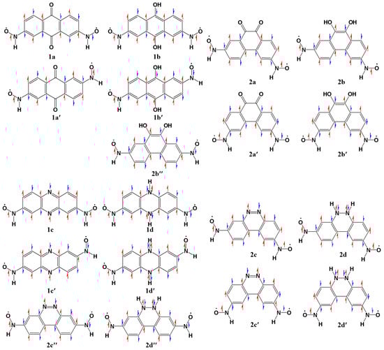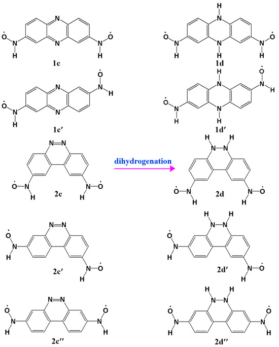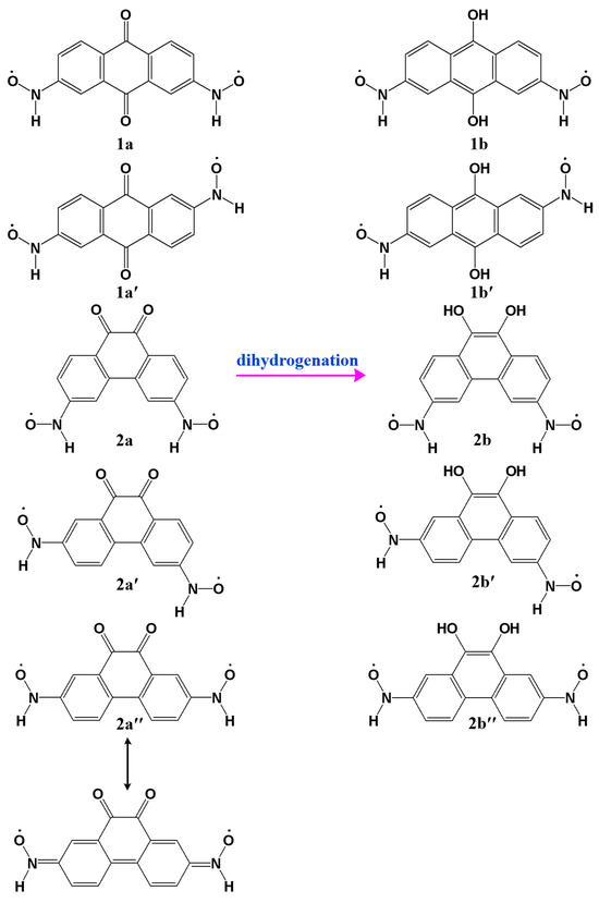 - Zhang, F.Y.; Song, X.Y.; Bu, Y.X. Redox-Modulated Magnetic Transformations between Ferro- and Antiferromagnetism in Organic Systems: Rational Design of Magnetic Organic Molecular Switches. J. Phys. Chem. C 2015, 119, 27930–27937. [Google Scholar] [CrossRef]