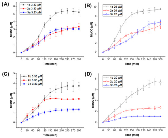 - Atkin, A.J.; Lynam, J.M.; Moulton, B.E.; Sawle, P.; Motterlini, R.; Boyle, N.M.; Pryce, M.T.; Fairlamb, I.J.S. Modification of the Deoxy-Myoglobin/Carbonmonoxy-Myoglobin UV-Vis Assay for Reliable Determination of CO-Release Rates from Organometallic Carbonyl Complexes. Dalton Trans. 2011, 40, 5755–5761. [Google Scholar] [CrossRef]