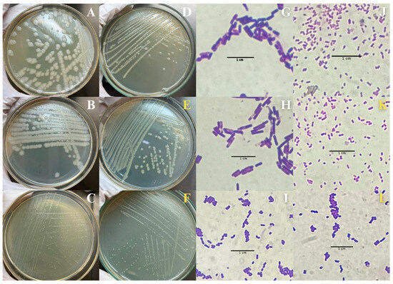 To isolate bacterial colonies from the LIH, the exhaustion-seeding technique was implemented, involving consecutive composite seedings. The isolated colonies were characterized through both macroscopic and microscopic evaluations. Macroscopic characterization was performed using a stereoscope (ECZ-EMB, Ionlab, Bangalore, Karnataka; 10×) to examine essential morphological parameters, including color, shape, elevation, margin, surface, consistency, and size. Colony shapes were visually classified as circular, filamentous, irregular, or punctiform. Elevation was classified as flat, raised, convex, umbonate, crateriform, or acute, while margins were described as entire, undulate, rhizoid, lobate, or filamentous. Surface aspects were classified as smooth, glistening, rough, dull, or rugose, and consistency was evaluated using a bacteriological loop, categorizing colonies as butyrous, viscid, brittle/friable, or mucoid. Colony size was measured using a digital caliper (Series 500, Mitutoyo, Kawasaki, Japan). Cellular morphological characterization was conducted through smear preparation and Gram staining, followed by microscopic analysis using a Nikon Eclipse EI Microscope (Nikon Instruments Inc., Melville, NY, USA) at 100× magnification. Bacterial shape, arrangements, and Gram classification were evaluated according to the methodologies outlined by Bartholomew and Mittwer [45].