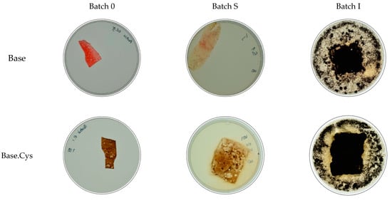 To overcome this limitation, samples from batch S were sterilized using UV radiation for 20 min instead of ethanol immersion. Post-irradiation, no visible changes in the appearance of the samples were observed, confirming the efficacy of the alternative sterilization method without compromising material integrity. Table 7 shows the assessment of mycelial growth based on growth intensity and its respective descriptions.