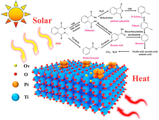 - Zhang, X.; Rao, R.; Gao, B.; Ma, S.; Bi, F.; Li, C.; Zhu, Z.; Liu, N.; Yang, Y.; Wang, Z. Crystal Engineering of TiO2 Enhanced Photothermal Catalytic Degradation of DEHP on Pt Catalysts. Mater. Today Chem. 2023, 34, 101755. [Google Scholar] [CrossRef]