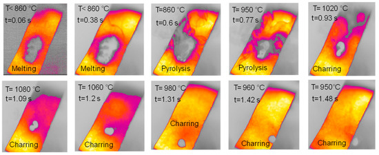 HSR experiment of hemicellulose at a target strip temperature ≈ 1300 °C (top view) [24].