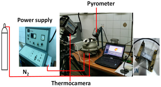 Figure 15 reports a photo of the equipment, the HSR and the equipment used in the experimental campaign. In the HSR, a pyrolytic graphite foil is used as the sample holder. The HSR is heated by Joule effects up to 2000 °C, a with heating rate of 104 °C/s. The stainless steel reactor is equipped with two optical openings of quartz for a pyrometer or a thermal camera.