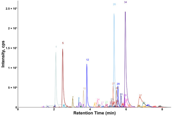 - Wei, R.; Li, G.; Seymour, A.B. High-Throughput and Multiplexed LC/MS/MRM Method for Targeted Metabolomics. Anal. Chem. 2010, 82, 5527–5533. [Google Scholar] [CrossRef]