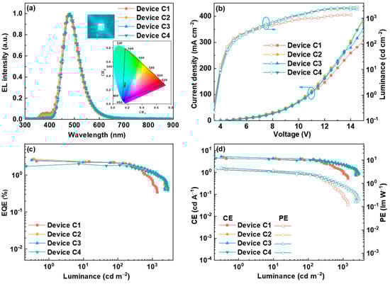 EL performance of devices C1–C4 and D1–D4.