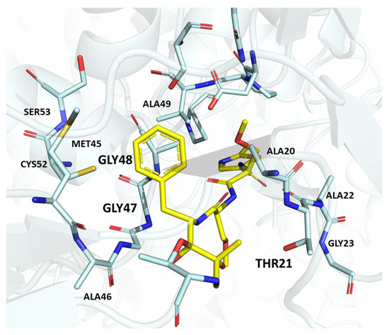Therefore, selective β5i inhibitors require bulky hydrophobic groups in P1. Due to substitution of Ala27 in β5c with Ser27 in β5i, the introduction of small, hydrophilic P3 groups in novel potential β5i inhibitors could be beneficial [15,34]. Furthermore, the S2 pocket of β5i is smaller compared to β5c due to the substitution of the constitutive subunit Gly48 residue with Cys or Ser in β5i, depending on the species.