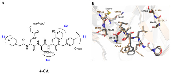 Chemical structures of inhibitors targeting the non-catalytic Cys48 residue 4-CA.