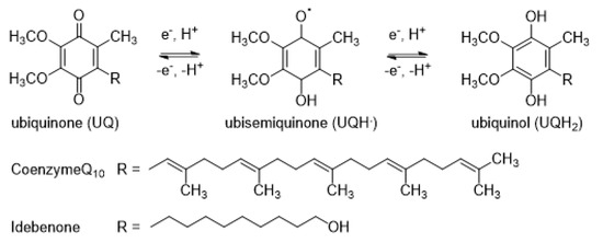 Structures of ubiquinone/ubisemiquinone/ubiquinol.