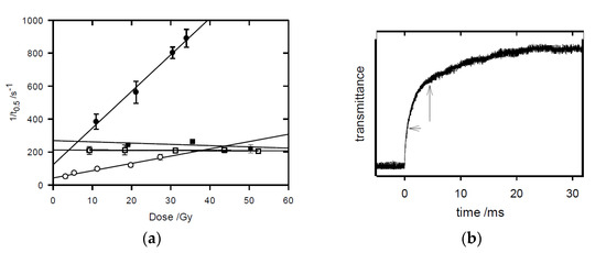 - Bensasson, R.V.; Land, E.J.; Truscott, T.G. Fash Photolysis and Pulse Radiolysis Contributions to the Chemistry pf Biology and Medicine; Pergamon Press Ltd.: Headington Hill Hall, Oxford, UK, 1983. [Google Scholar]