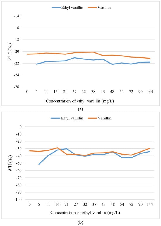 3.2. GC-IRMS Analysis of Vanillin and Ethyl Vanillin