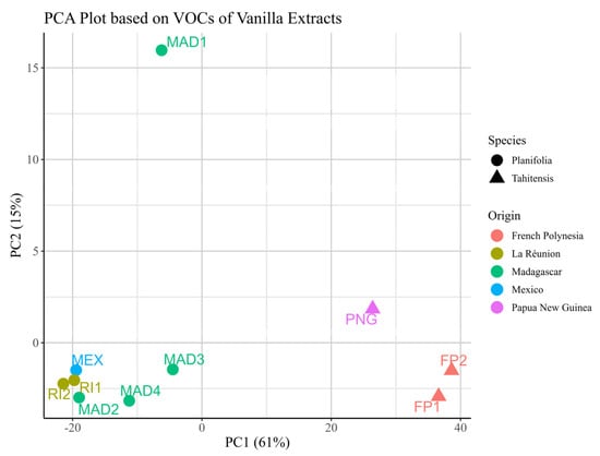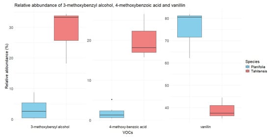 - Hassan, S.; Araceli, P.; Denis, B.; de los Ángeles, V.; Mayra, N.; Delfino, R. Identification of volatile compounds in cured Mexican vanilla (Vanilla planifolia G. Jackson) beans using headspace solid-phase microextraction with gas chromatography-mass spectrometry. Fruits 2016, 71, 407–418. [Google Scholar] [CrossRef][Green Version]
