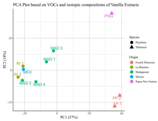 Authentic Aroma and Compound-Specific Isotope Ratios (δ13C, δ2H) Profiles of Vanilla Pods (V. planifolia and V. tahitensis)